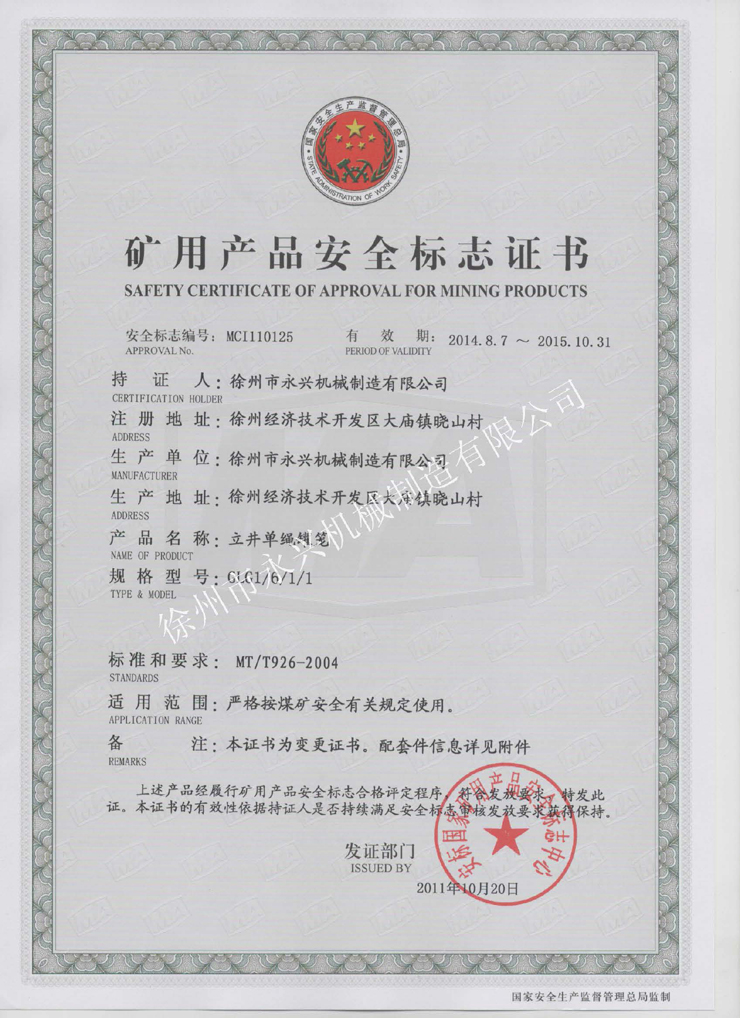 您的當(dāng)前位置:首頁 > 關(guān)于永興 >安標證書
