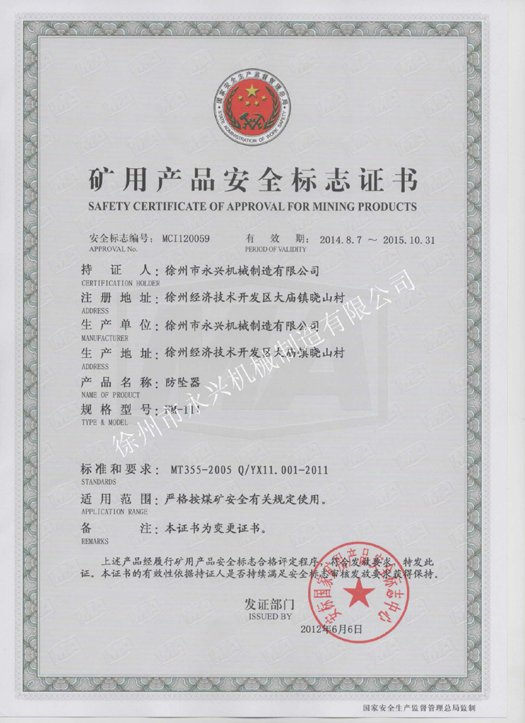 您的當(dāng)前位置:首頁(yè) > 關(guān)于永興 >安標(biāo)證書(shū)