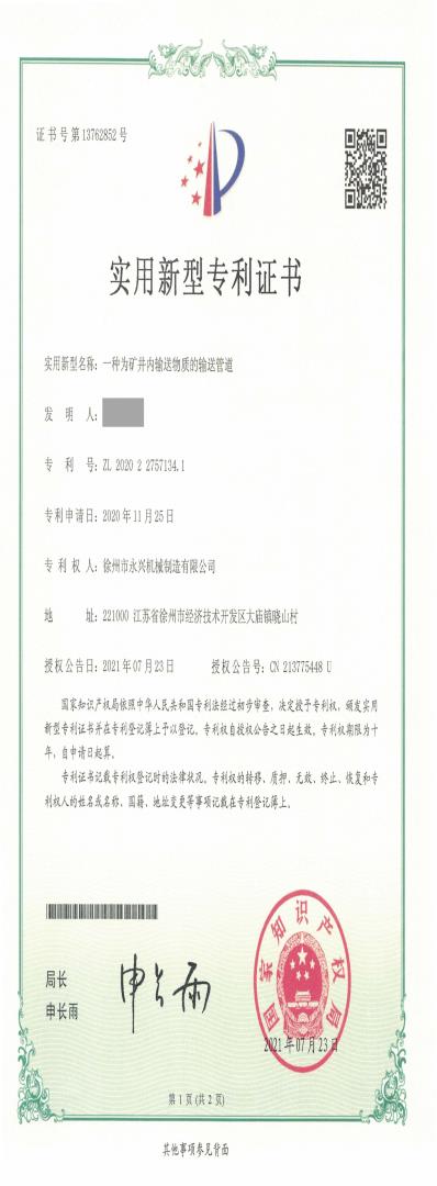 專利-一種為礦井內(nèi)輸送物質(zhì)的輸送管道